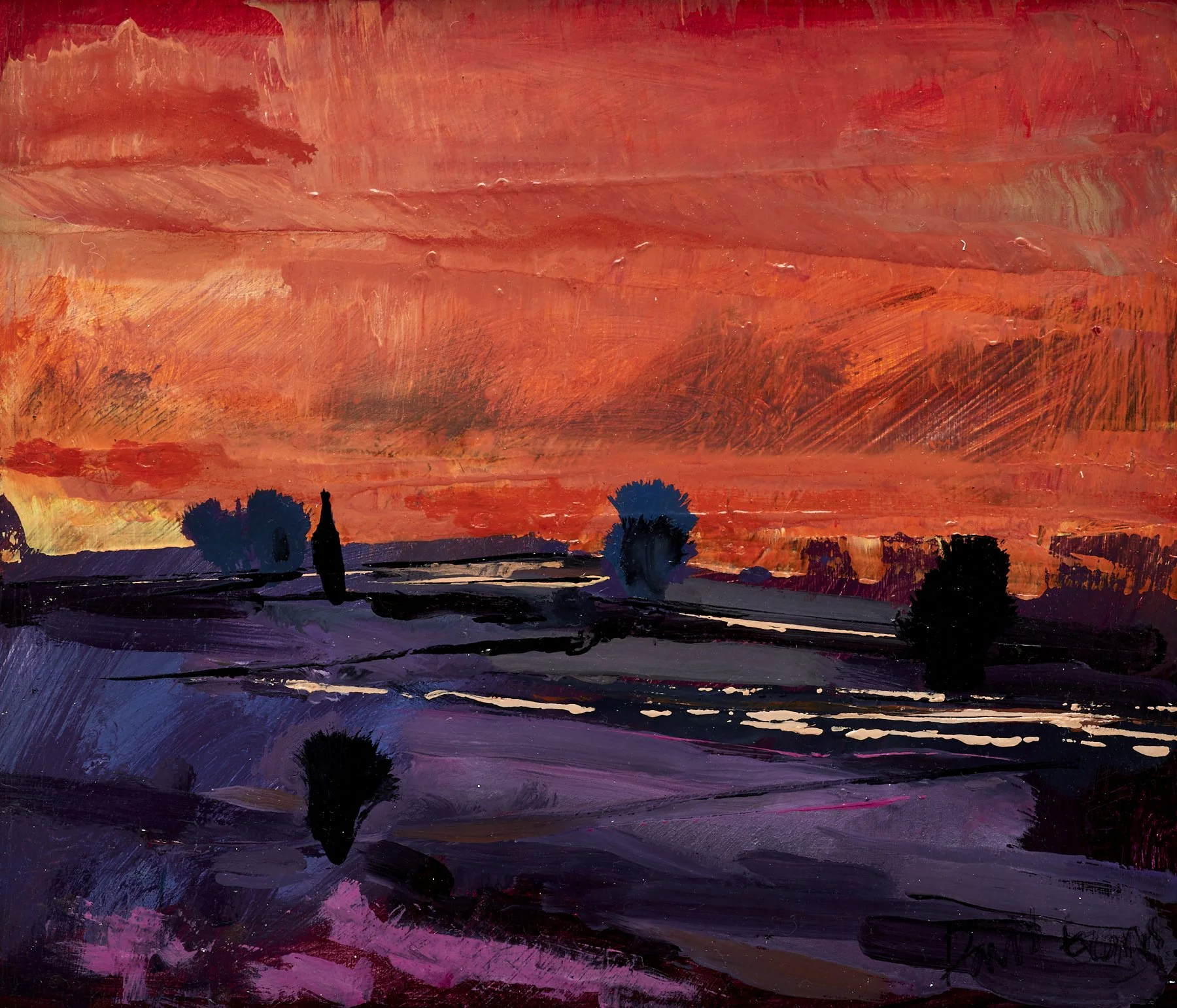 Working in her studio from observational drawings and watercolour sketches, she paints with vigour from eye to heart to hand. Laying down oil colour using a variety of techniques.